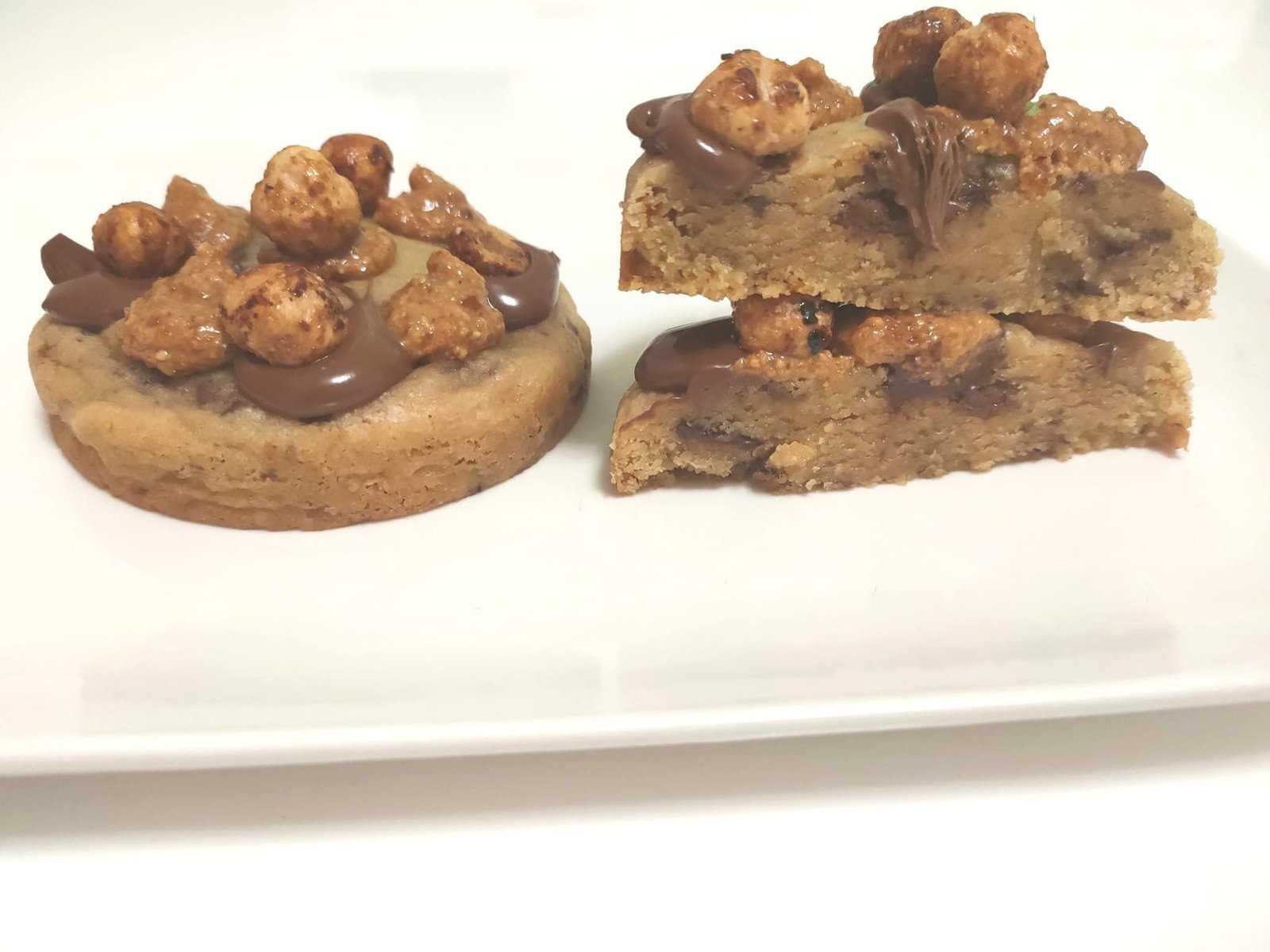 Pâte à cookie aux brisures de chocolat au lait, praliné Noisette, Gianduja et noisettes Caramélisées